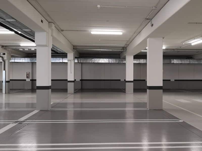 El pavimento del garaje se suele limpiar semestralmente con máquinas especializadas en manchas de aceite y suciedad.